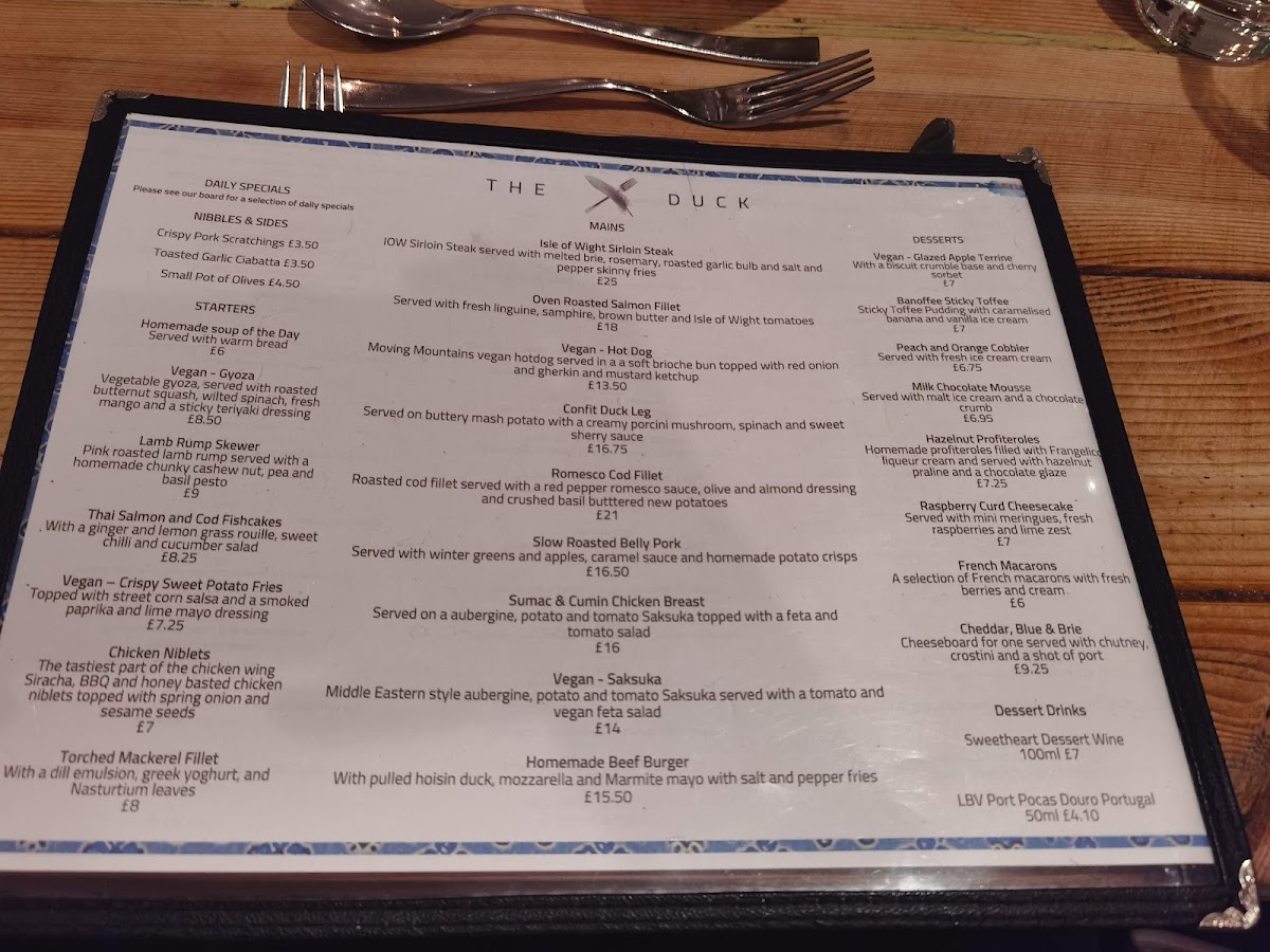 Located at Appley Rise in Ryde, The Duck offers a delightful experience for those seeking a charming blend of British dining with a modern twist. The restaurant's menu stands out for its thoughtfully crafted dishes, which combine locally sourced ingredients with innovative flavors. Whether you’re craving classic comfort food or something a bit more adventurous, The Duck Menu is sure to impress with its diverse offerings.